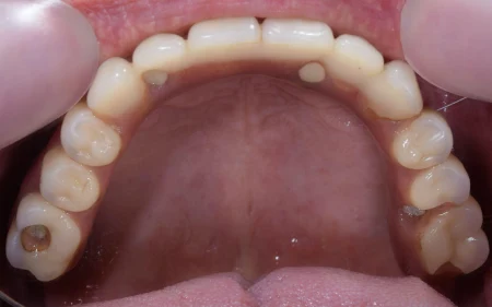 重度の歯周病が進行していて、どの歯もグラグラ揺れていました。 すべての歯を抜く必要がありました。