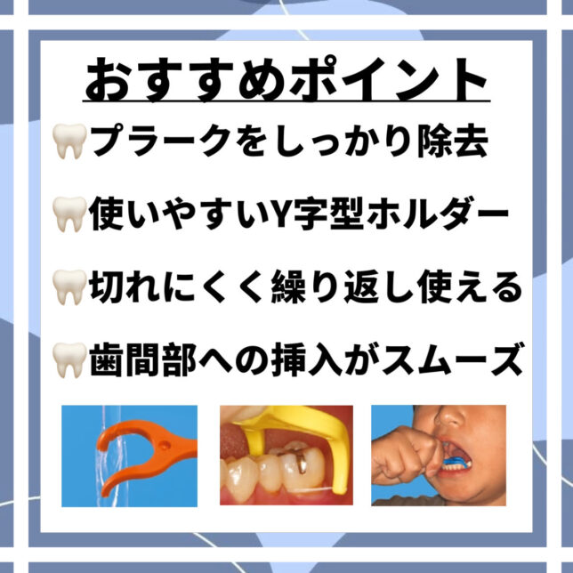 フロスを使用すると歯ブラシのみのケアに比べて歯垢除去率が約1.5倍にアップすると言われています。 フロスが習慣化出来ていない方やお子さまの仕上げ磨きにもおすすめです!