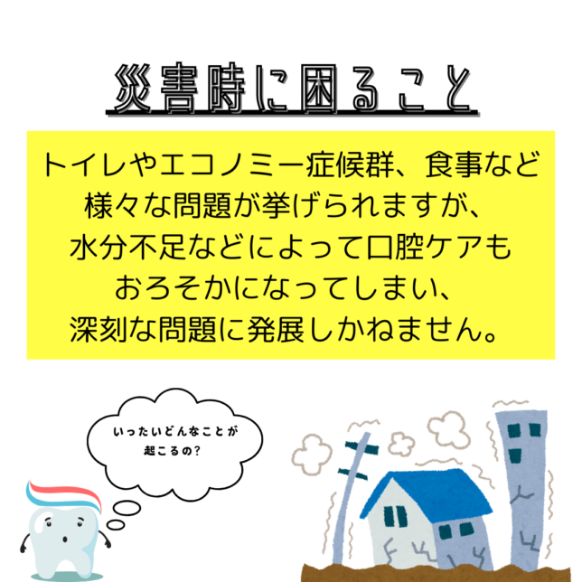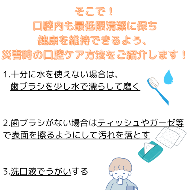 今回は万が一に備えた、災害時に役立つ口腔ケアのお話です!