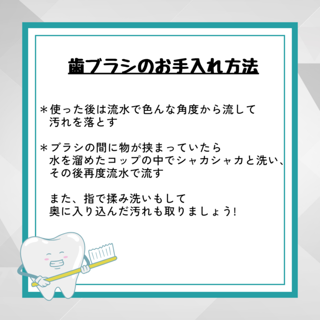2024.9.4お知らせ歯ブラシの正しい保管の仕方と洗い方