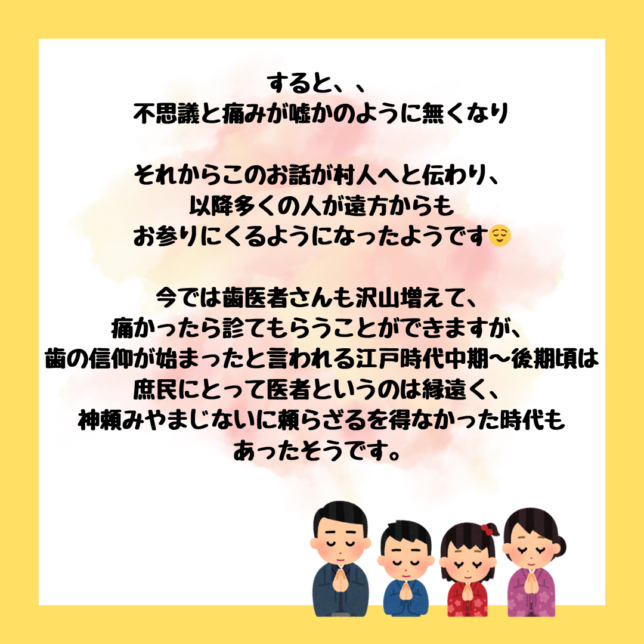 #土日祝診療#高津区#梶が谷#歯医者#歯医者さん#虫歯予防#歯周病#矯正歯科#インプラント#ザイゴマインプラント#口腔ケア#歯茎の腫れ#口臭#歯の神様#荻窪白山神社#歯痛