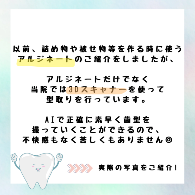 みなさんこんにちは! 梶が谷ファースト歯科です😊 今回は当院で導入している『Run yesスキャナー』のご紹介です! 詰め物や被せ物等を作ったことがある方は 型取りと聞くとドロっとしたアルジネートを 想像される方が多いかもしれません。 ですが、今はそれだけでなく AI機能で3Dスキャンをして歯型を作ることができるんです! 時代の進化はすごいですね。。 今まで苦痛に耐えながら受けていた方もこれなら不快感なくスピーディに受けていただけると思います😌 〜〜〜〜〜〜〜〜〜〜〜〜〜〜〜〜〜 #梶が谷ファースト歯科 📮神奈川県川崎市高津区末長1-9-1 スタイリオ梶が谷MALL6階 ☎️044-750-0790 🚃東急田園都市線 梶が谷駅より徒歩1分 🦷診療時間 AM10:00〜PM19:00 #土日祝診療#高津区#梶が谷#歯医者#歯医者さん#虫歯予防#歯周病#歯痛#矯正歯科#インプラント#ザイゴマインプラント#口腔ケア#歯茎の腫れ#口臭#口腔内スキャナー#AI#3Dスキャナー