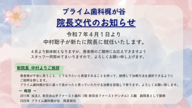 令和7年4月1日より、中村聡子が新たに院長に就任いたします。