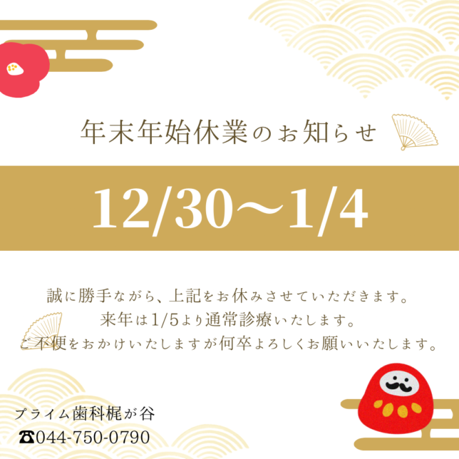 みなさんこんにちは!梶が谷ファースト歯科です🦷年末年始の休診日のお知らせです… -
