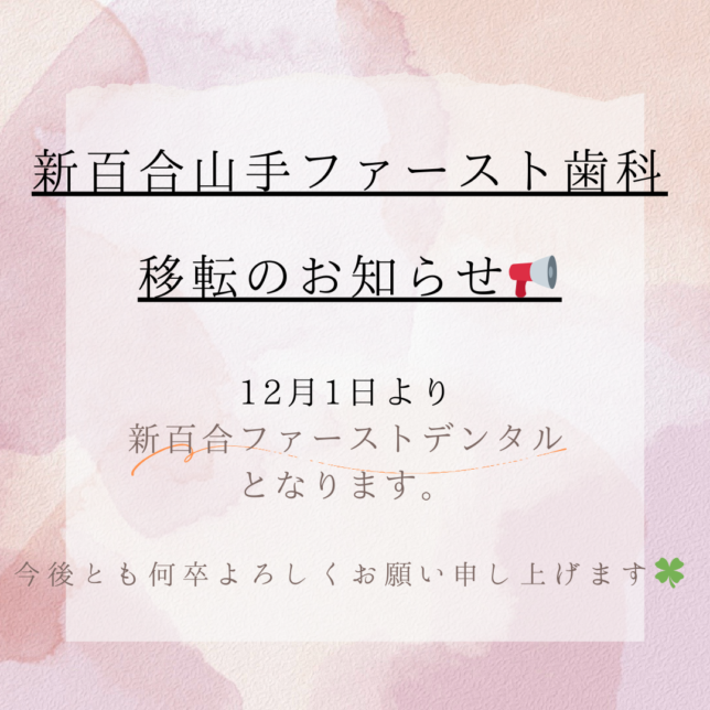 お知らせ2024.12.2 新百合山手ファースト歯科移転…