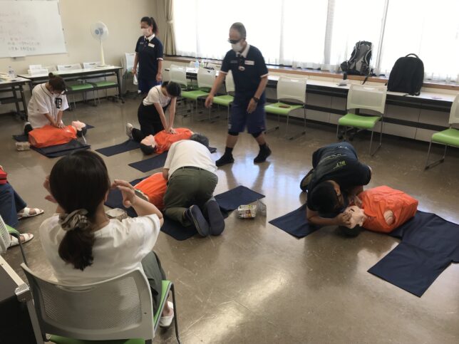 全スタッフ参加の救命救急講習の様子です!日本赤十字のスタッフの方々から丁寧に教… -