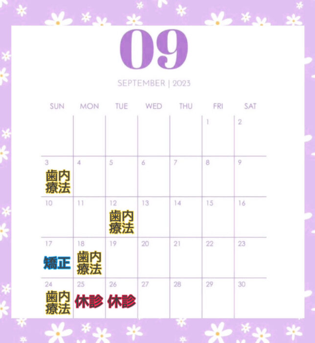 | 休診日 | 月曜日 ※院内清掃や勉強会の為、休診する場合がございますので、診療カレンダーをご確認ください。 |