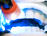 歯の表面にホワイトニングジェルを塗り、ブリリカで特殊な光を照射します。すると、ジェルの成分が活性化し、内部まで浸透して歯を白くします。